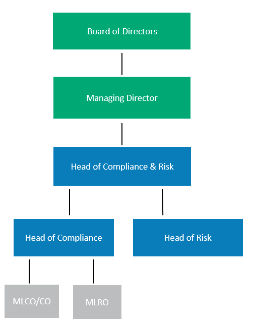 This includes line management responsibility for a key person (compliance officer, money laundering compliance officer, money laundering reporting officer). |