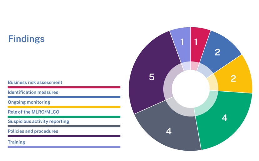There were no findings identified for two of the supervised persons examined. For the remaining seven, 30 findings were identified, highlighting a range of statutory and regulatory requirements that had either not been complied with or had only partially been complied with. 37% of the findings identified were considered to be of a more serious nature.