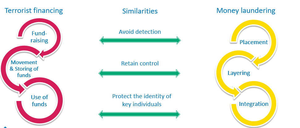 - Funds may be obtained legally and may be of low value, but are ultimately used for an illegal activity – the financing of terrorism