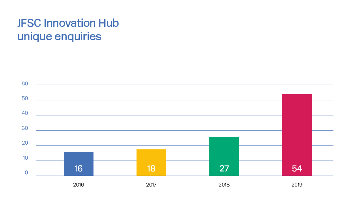 As detailed in the Jersey Finance publication 'Jersey for Innovation in Finance: Ready to Support Global Success', many firms are constrained by ageing technology, non-real-time systems, technology with limited interoperability or complicated systems arising from multiple mergers and acquisitions. It is no surprise then that the level of enquiries received by our Innovation Hub has steadily increased.