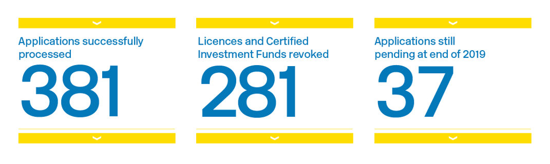 Our supervisory teams devoted increased resource to examinations with a particular focus on the role of the Money Laundering Reporting Officer – the key person responsible for coordinating a business’ front-line fight. The output of our Supervision Examination Unit increased by 18% compared to 2018 and we completed three thematic examinations across 42 businesses with feedback published for outsourcing, property managers, letting agents and estate agents.