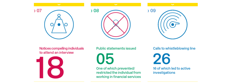 Over the course of the year, we also issued four directions preventing individuals from fulfilling specific functions and directed a number of businesses to stop taking on any new business while they remediated regulatory shortcomings.