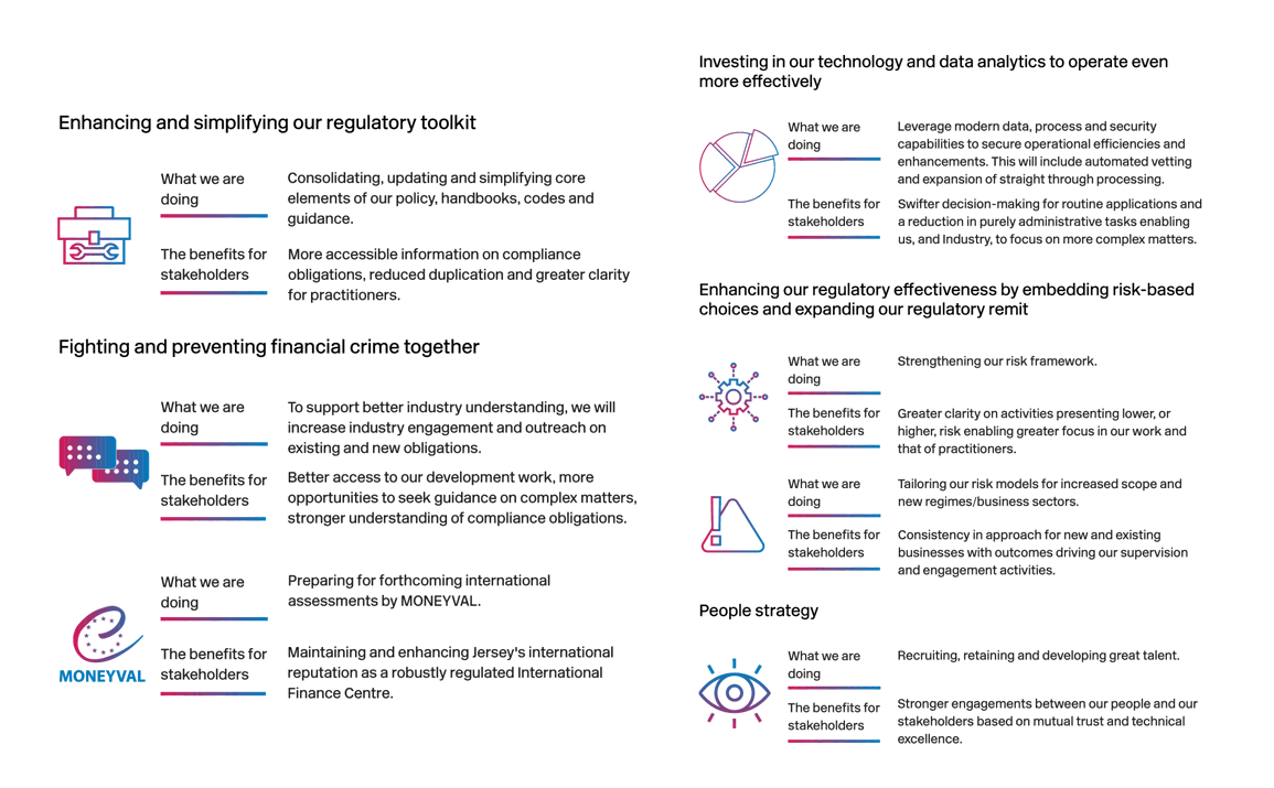 Last year we published our strategic framework for 2021-2024 which outlined our long-term vision to be a high performing regulator, building for the long-term success of Jersey. This business plan is an overview of what we intend to deliver in 2022, the first year of the strategic journey to achieve our vision.